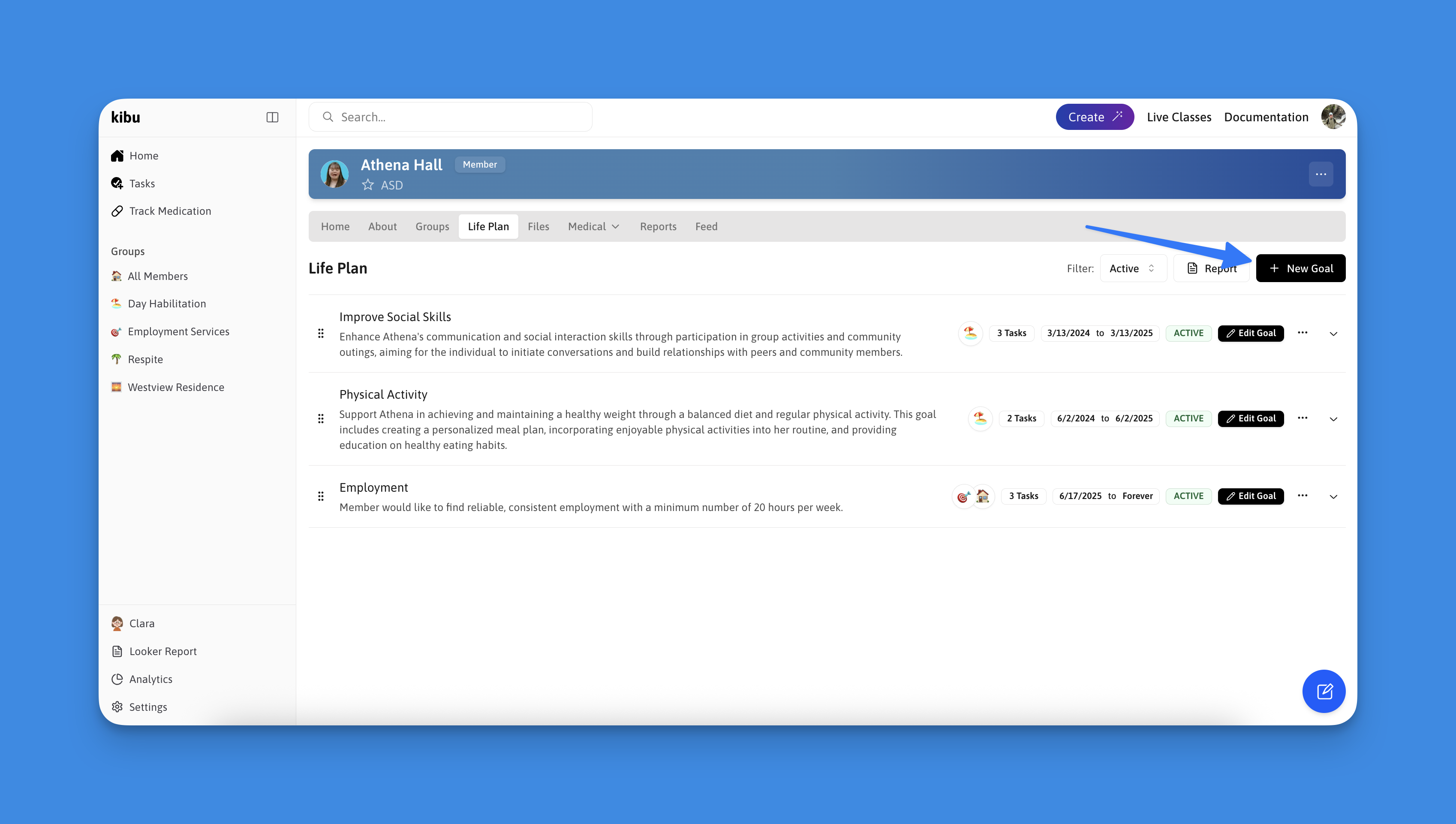 - Select the “Life Plan Goals” tab