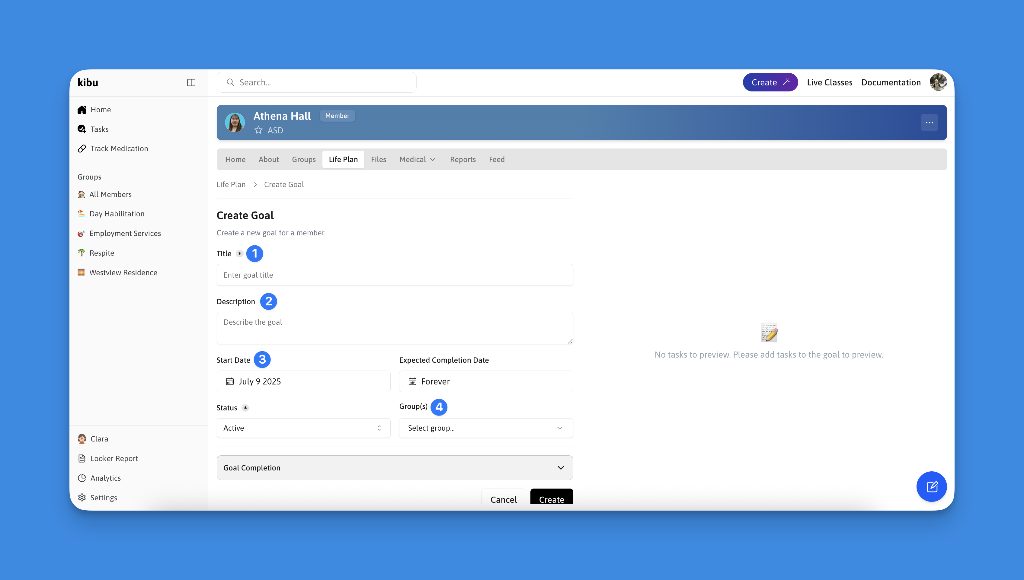 - Select Create: Once you are satisfied with you goals details press the create button